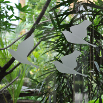 Das Vogelhaus war fertig; die Glasflächen riesig und mit der Idee, das Problem mit schwarzen Aufklebern in Vogelumrissen zu lösen, mochte sich niemand so recht anfreunden.
